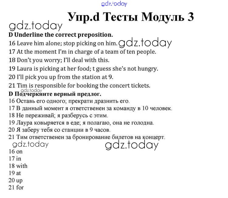 На страницах сайта gdz.today вы найдете учебный и вспомогательный материал, направленный на улучшения знаний школьной программы. ГДЗ - онлайн мир знаний Modul 3 Книга с тестами d Учебнику по Английскому языку для 10 класса Афанасьева, Дули Просвещение Spotlight 2015
