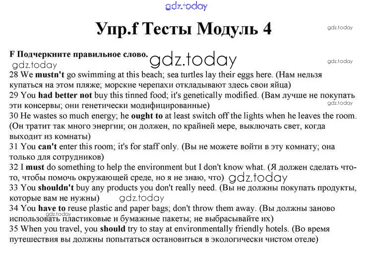 На страницах сайта gdz.today вы найдете учебный и вспомогательный материал, направленный на улучшения знаний школьной программы. ГДЗ - онлайн мир знаний Modul 4 Книга с тестами f Учебнику по Английскому языку для 10 класса Афанасьева, Дули Просвещение Spotlight 2015