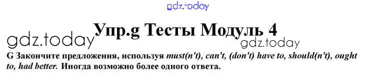 На страницах сайта gdz.today вы найдете учебный и вспомогательный материал, направленный на улучшения знаний школьной программы. ГДЗ - онлайн мир знаний Modul 4 Книга с тестами g Учебнику по Английскому языку для 10 класса Афанасьева, Дули Просвещение Spotlight 2015