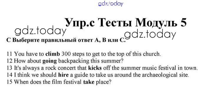 На страницах сайта gdz.today вы найдете учебный и вспомогательный материал, направленный на улучшения знаний школьной программы. ГДЗ - онлайн мир знаний Modul 5 Книга с тестами c Учебнику по Английскому языку для 10 класса Афанасьева, Дули Просвещение Spotlight 2015