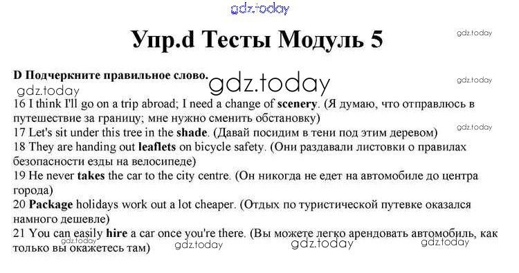 На страницах сайта gdz.today вы найдете учебный и вспомогательный материал, направленный на улучшения знаний школьной программы. ГДЗ - онлайн мир знаний Modul 5 Книга с тестами d Учебнику по Английскому языку для 10 класса Афанасьева, Дули Просвещение Spotlight 2015