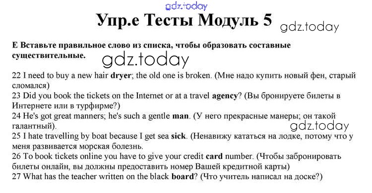 На страницах сайта gdz.today вы найдете учебный и вспомогательный материал, направленный на улучшения знаний школьной программы. ГДЗ - онлайн мир знаний Modul 5 Книга с тестами e Учебнику по Английскому языку для 10 класса Афанасьева, Дули Просвещение Spotlight 2015