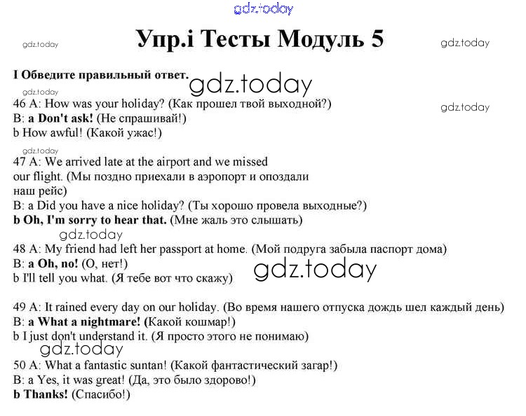 На страницах сайта gdz.today вы найдете учебный и вспомогательный материал, направленный на улучшения знаний школьной программы. ГДЗ - онлайн мир знаний Modul 5 Книга с тестами i Учебнику по Английскому языку для 10 класса Афанасьева, Дули Просвещение Spotlight 2015