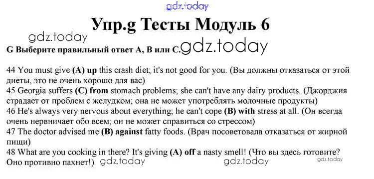 Ответы к Modul 6 Книга с тестами g Учебнику по Английскому языку для 10 класса Афанасьева, Дули Просвещение Spotlight 2015