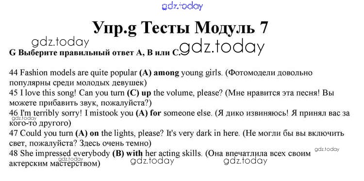 На страницах сайта gdz.today вы найдете учебный и вспомогательный материал, направленный на улучшения знаний школьной программы. ГДЗ - онлайн мир знаний Modul 7 Книга с тестами g Учебнику по Английскому языку для 10 класса Афанасьева, Дули Просвещение Spotlight 2015