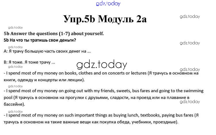 На страницах сайта gdz.today вы найдете учебный и вспомогательный материал, направленный на улучшения знаний школьной программы. ГДЗ - онлайн мир знаний Часть 2a Решение к Module 2 5b Учебнику по Английскому языку для 10 класса Афанасьева, Дули Просвещение Spotlight 2015
