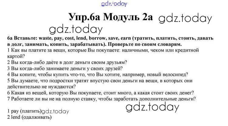 На страницах сайта gdz.today вы найдете учебный и вспомогательный материал, направленный на улучшения знаний школьной программы. ГДЗ - онлайн мир знаний Часть 2a Решение к Module 2 6a Учебнику по Английскому языку для 10 класса Афанасьева, Дули Просвещение Spotlight 2015