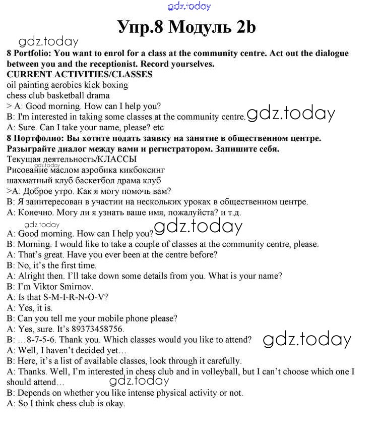 На страницах сайта gdz.today вы найдете учебный и вспомогательный материал, направленный на улучшения знаний школьной программы. ГДЗ - онлайн мир знаний Часть 2b Решение к Module 2 8 Учебнику по Английскому языку для 10 класса Афанасьева, Дули Просвещение Spotlight 2015