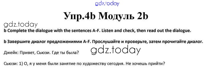 На страницах сайта gdz.today вы найдете учебный и вспомогательный материал, направленный на улучшения знаний школьной программы. ГДЗ - онлайн мир знаний Часть 2b Решение к Module 2 4b Учебнику по Английскому языку для 10 класса Афанасьева, Дули Просвещение Spotlight 2015