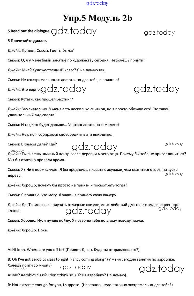 На страницах сайта gdz.today вы найдете учебный и вспомогательный материал, направленный на улучшения знаний школьной программы. ГДЗ - онлайн мир знаний Часть 2b Решение к Module 2 5 Учебнику по Английскому языку для 10 класса Афанасьева, Дули Просвещение Spotlight 2015