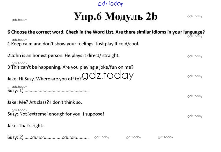 На страницах сайта gdz.today вы найдете учебный и вспомогательный материал, направленный на улучшения знаний школьной программы. ГДЗ - онлайн мир знаний Часть 2b Решение к Module 2 6 Учебнику по Английскому языку для 10 класса Афанасьева, Дули Просвещение Spotlight 2015
