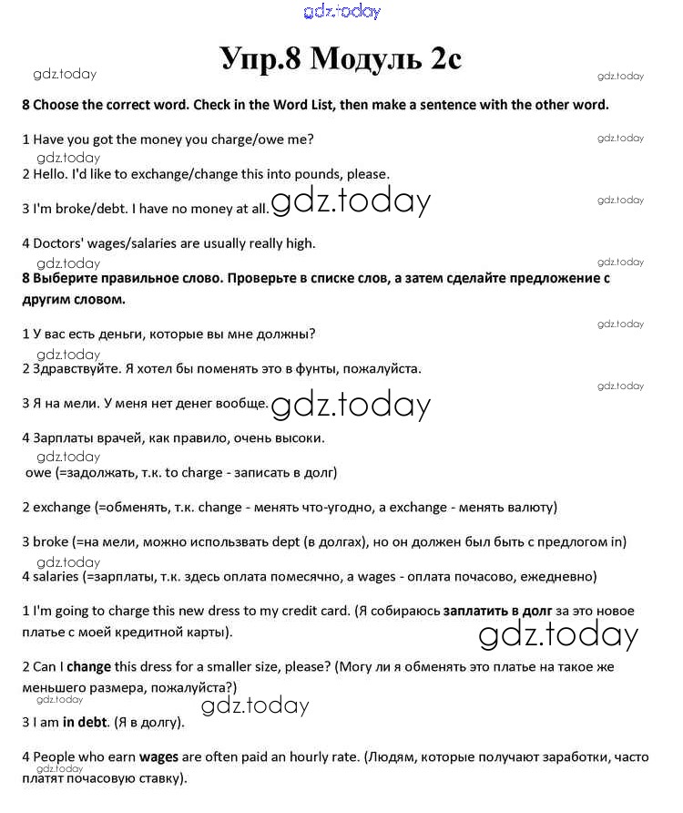 На страницах сайта gdz.today вы найдете учебный и вспомогательный материал, направленный на улучшения знаний школьной программы. ГДЗ - онлайн мир знаний Часть 2c Решение к Module 2 8 Учебнику по Английскому языку для 10 класса Афанасьева, Дули Просвещение Spotlight 2015