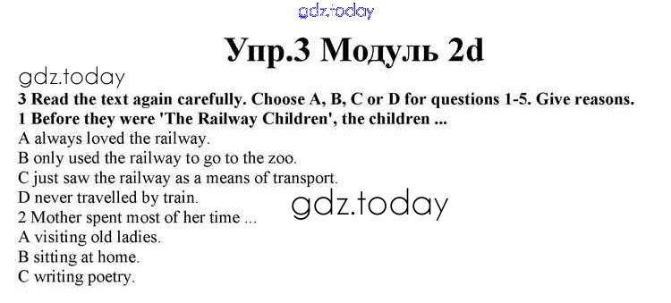 На страницах сайта gdz.today вы найдете учебный и вспомогательный материал, направленный на улучшения знаний школьной программы. ГДЗ - онлайн мир знаний Часть 2d Решение к Module 2 3 Учебнику по Английскому языку для 10 класса Афанасьева, Дули Просвещение Spotlight 2015