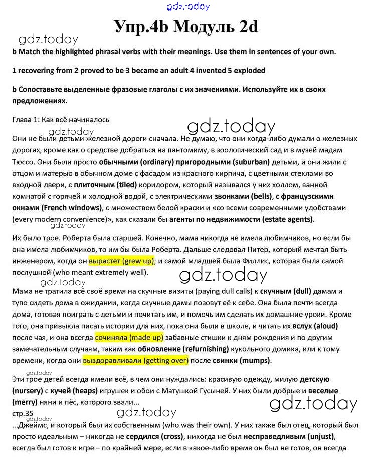 На страницах сайта gdz.today вы найдете учебный и вспомогательный материал, направленный на улучшения знаний школьной программы. ГДЗ - онлайн мир знаний Часть 2d Решение к Module 2 4b Учебнику по Английскому языку для 10 класса Афанасьева, Дули Просвещение Spotlight 2015