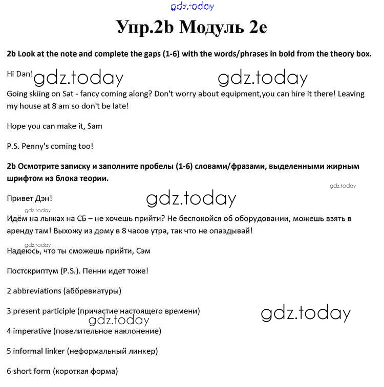 На страницах сайта gdz.today вы найдете учебный и вспомогательный материал, направленный на улучшения знаний школьной программы. ГДЗ - онлайн мир знаний Часть 2e Решение к Module 2 2b Учебнику по Английскому языку для 10 класса Афанасьева, Дули Просвещение Spotlight 2015