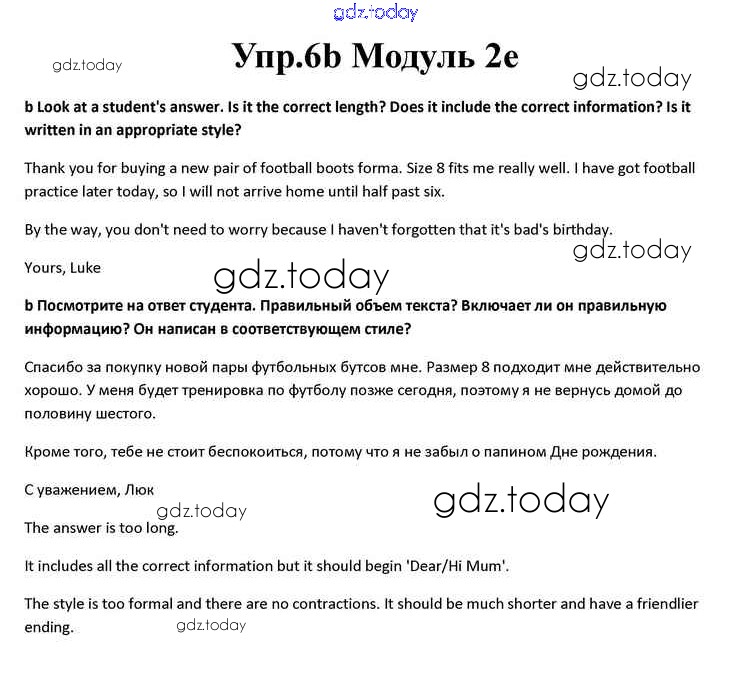 На страницах сайта gdz.today вы найдете учебный и вспомогательный материал, направленный на улучшения знаний школьной программы. ГДЗ - онлайн мир знаний Часть 2e Решение к Module 2 6b Учебнику по Английскому языку для 10 класса Афанасьева, Дули Просвещение Spotlight 2015