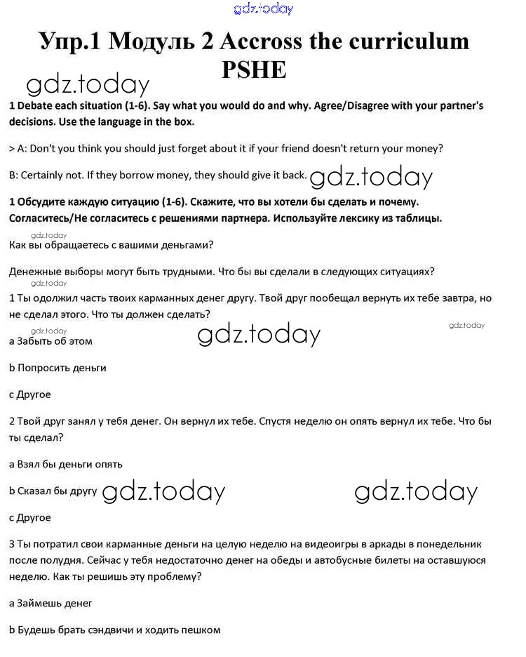 На страницах сайта gdz.today вы найдете учебный и вспомогательный материал, направленный на улучшения знаний школьной программы. ГДЗ - онлайн мир знаний Accross the curriculum PSHE Решение к Module 2 1 Учебнику по Английскому языку для 10 класса Афанасьева, Дули Просвещение Spotlight 2015