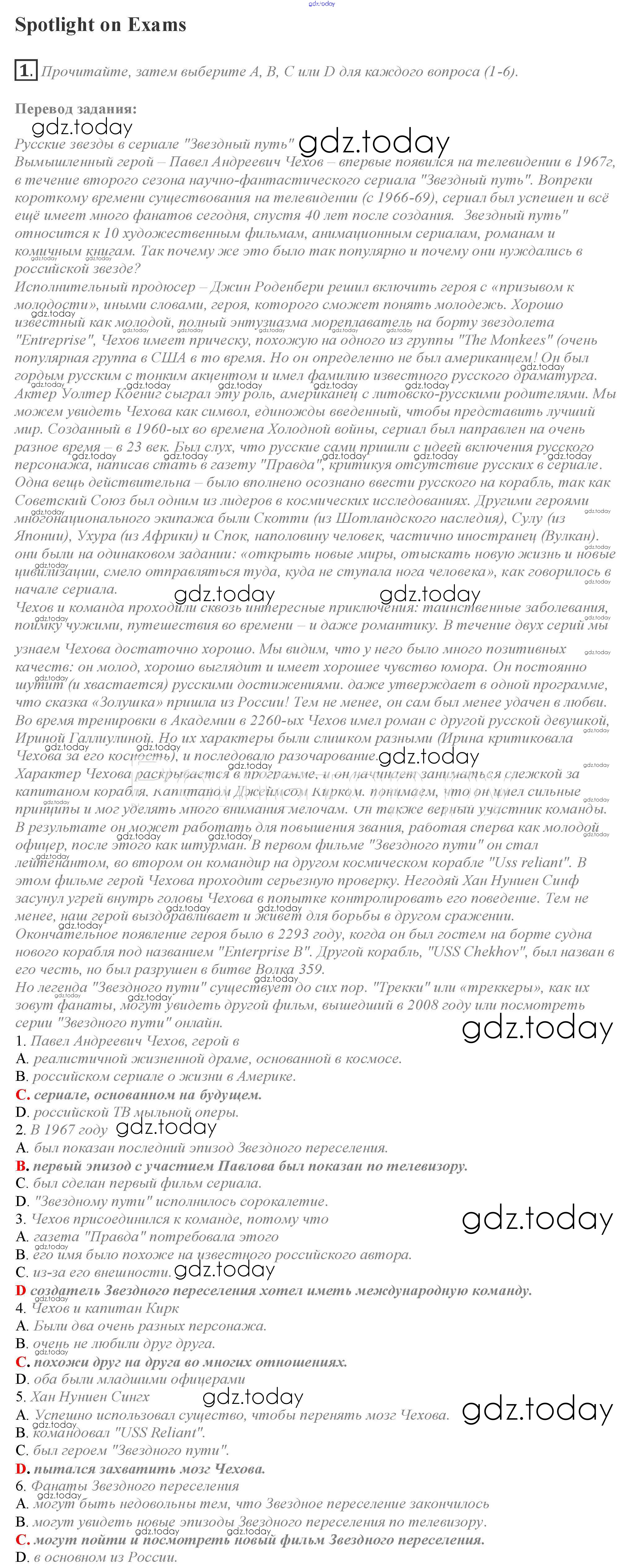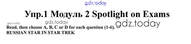 На страницах сайта gdz.today вы найдете учебный и вспомогательный материал, направленный на улучшения знаний школьной программы. ГДЗ - онлайн мир знаний Spotlight on Exams Решение к Module 2 1 Учебнику по Английскому языку для 10 класса Афанасьева, Дули Просвещение Spotlight 2015