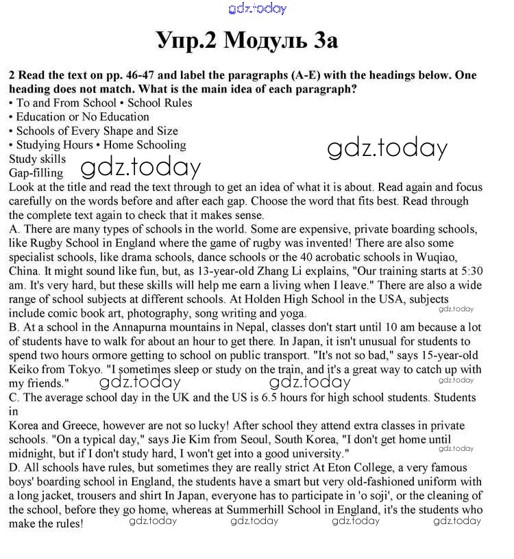 На страницах сайта gdz.today вы найдете учебный и вспомогательный материал, направленный на улучшения знаний школьной программы. ГДЗ - онлайн мир знаний Часть 3a Решение к Module 3 2 Учебнику по Английскому языку для 10 класса Афанасьева, Дули Просвещение Spotlight 2015