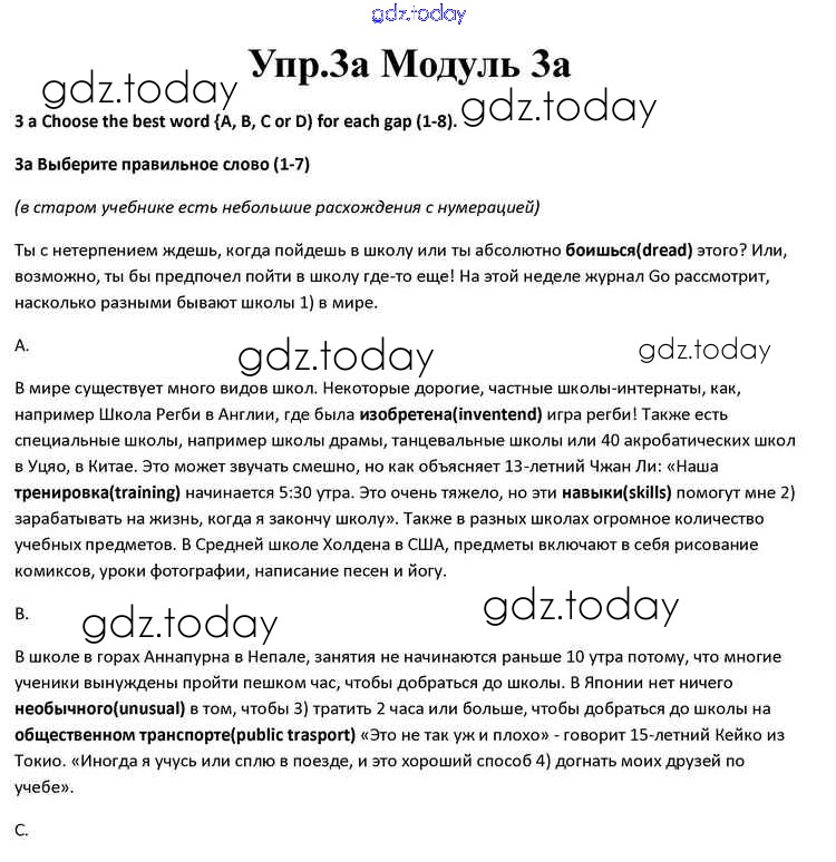 На страницах сайта gdz.today вы найдете учебный и вспомогательный материал, направленный на улучшения знаний школьной программы. ГДЗ - онлайн мир знаний Часть 3a Решение к Module 3 3a Учебнику по Английскому языку для 10 класса Афанасьева, Дули Просвещение Spotlight 2015