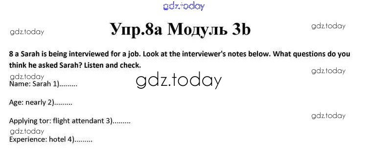 На страницах сайта gdz.today вы найдете учебный и вспомогательный материал, направленный на улучшения знаний школьной программы. ГДЗ - онлайн мир знаний Часть 3b Решение к Module 3 8a Учебнику по Английскому языку для 10 класса Афанасьева, Дули Просвещение Spotlight 2015