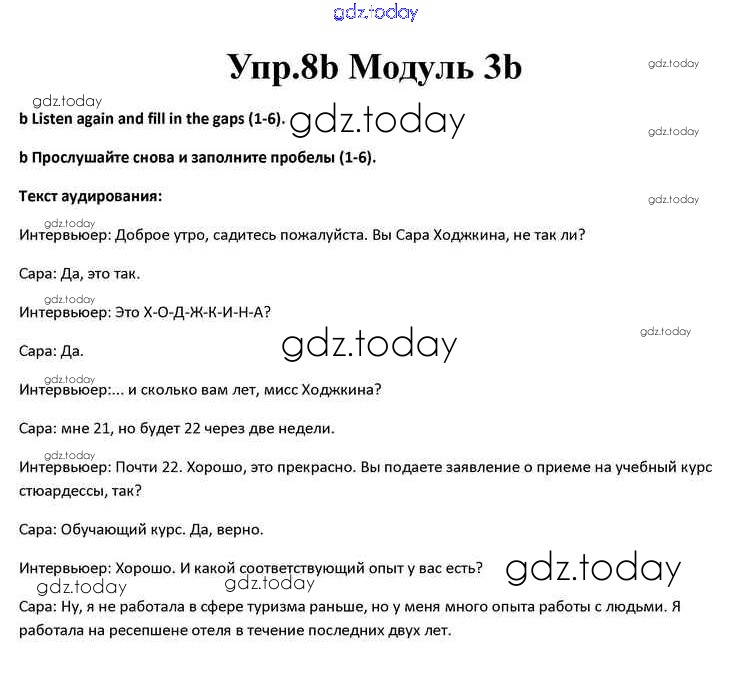 На страницах сайта gdz.today вы найдете учебный и вспомогательный материал, направленный на улучшения знаний школьной программы. ГДЗ - онлайн мир знаний Часть 3b Решение к Module 3 8b Учебнику по Английскому языку для 10 класса Афанасьева, Дули Просвещение Spotlight 2015