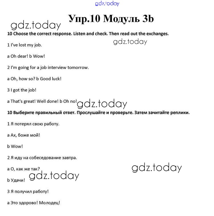 На страницах сайта gdz.today вы найдете учебный и вспомогательный материал, направленный на улучшения знаний школьной программы. ГДЗ - онлайн мир знаний Часть 3b Решение к Module 3 10 Учебнику по Английскому языку для 10 класса Афанасьева, Дули Просвещение Spotlight 2015