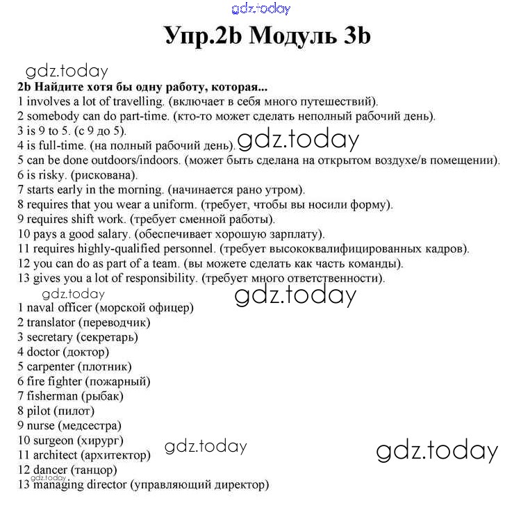 На страницах сайта gdz.today вы найдете учебный и вспомогательный материал, направленный на улучшения знаний школьной программы. ГДЗ - онлайн мир знаний Часть 3b Решение к Module 3 2b Учебнику по Английскому языку для 10 класса Афанасьева, Дули Просвещение Spotlight 2015