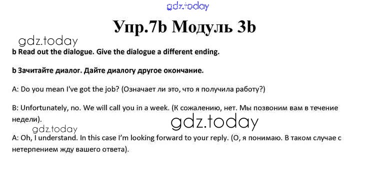 На страницах сайта gdz.today вы найдете учебный и вспомогательный материал, направленный на улучшения знаний школьной программы. ГДЗ - онлайн мир знаний Часть 3b Решение к Module 3 7b Учебнику по Английскому языку для 10 класса Афанасьева, Дули Просвещение Spotlight 2015