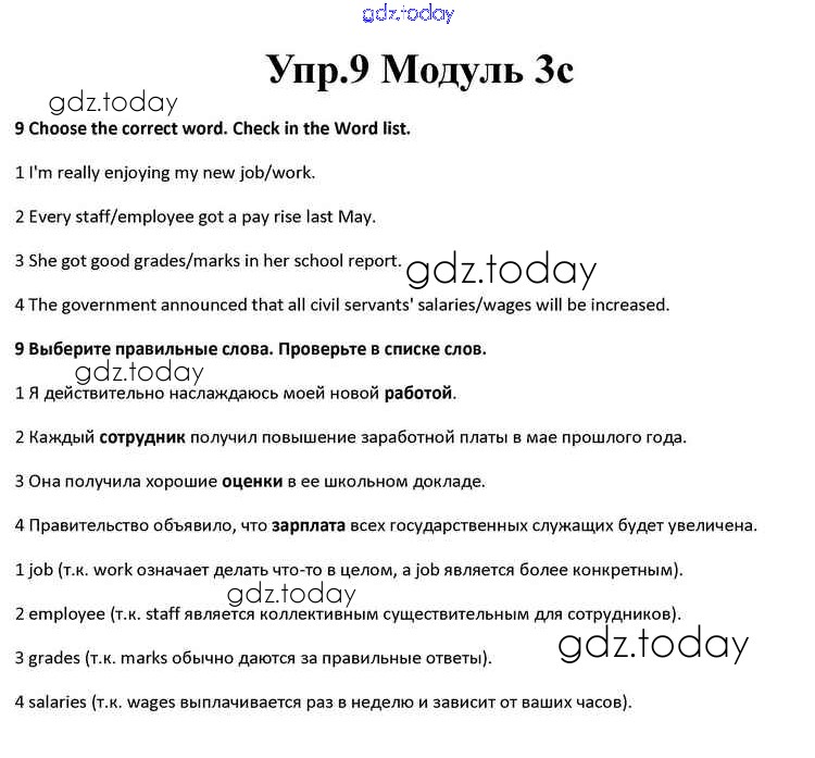 На страницах сайта gdz.today вы найдете учебный и вспомогательный материал, направленный на улучшения знаний школьной программы. ГДЗ - онлайн мир знаний Часть 3c Решение к Module 3 9 Учебнику по Английскому языку для 10 класса Афанасьева, Дули Просвещение Spotlight 2015