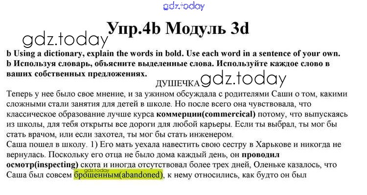 На страницах сайта gdz.today вы найдете учебный и вспомогательный материал, направленный на улучшения знаний школьной программы. ГДЗ - онлайн мир знаний Часть 3d Решение к Module 3 4b Учебнику по Английскому языку для 10 класса Афанасьева, Дули Просвещение Spotlight 2015