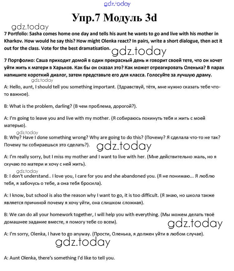 На страницах сайта gdz.today вы найдете учебный и вспомогательный материал, направленный на улучшения знаний школьной программы. ГДЗ - онлайн мир знаний Часть 3d Решение к Module 3 7 Учебнику по Английскому языку для 10 класса Афанасьева, Дули Просвещение Spotlight 2015