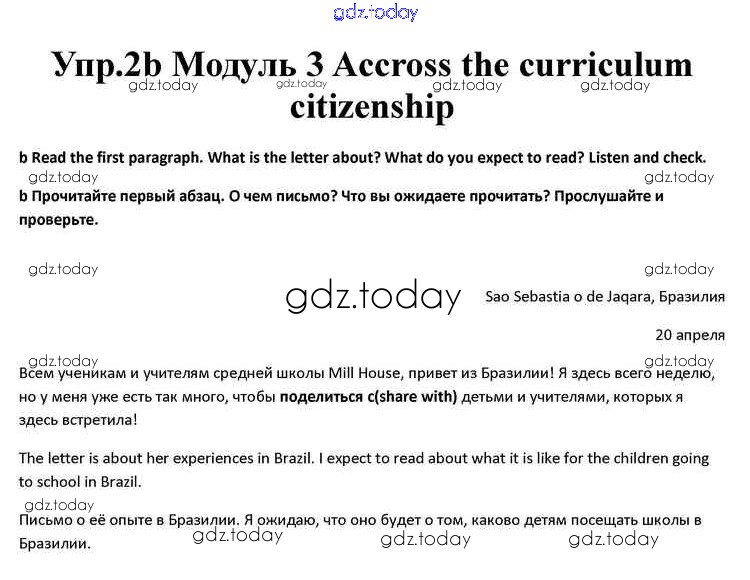 На страницах сайта gdz.today вы найдете учебный и вспомогательный материал, направленный на улучшения знаний школьной программы. ГДЗ - онлайн мир знаний Accross the curriculum Citizenship Решение к Module 3 2b Учебнику по Английскому языку для 10 класса Афанасьева, Дули Просвещение Spotlight 2015