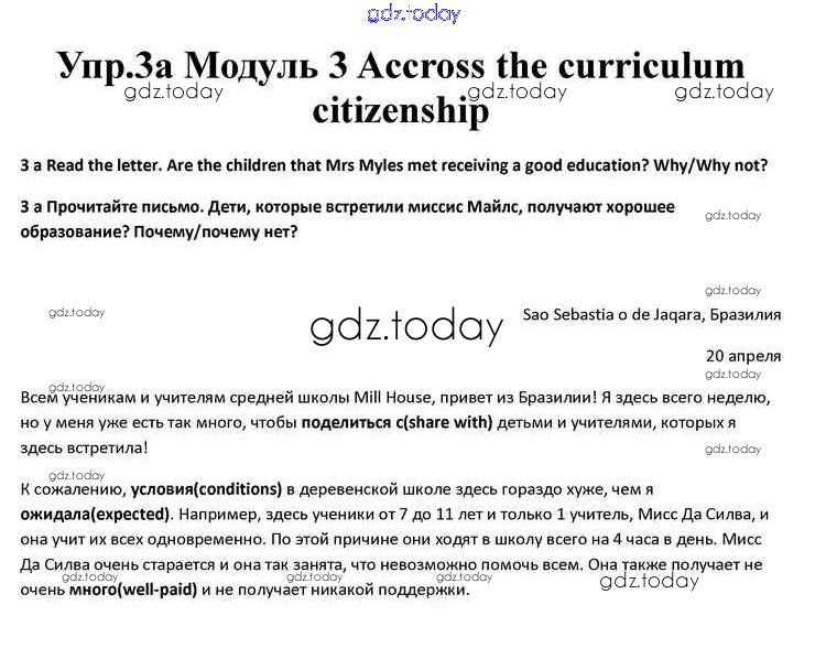 На страницах сайта gdz.today вы найдете учебный и вспомогательный материал, направленный на улучшения знаний школьной программы. ГДЗ - онлайн мир знаний Accross the curriculum Citizenship Решение к Module 3 3a Учебнику по Английскому языку для 10 класса Афанасьева, Дули Просвещение Spotlight 2015