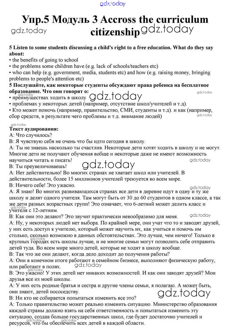 На страницах сайта gdz.today вы найдете учебный и вспомогательный материал, направленный на улучшения знаний школьной программы. ГДЗ - онлайн мир знаний Accross the curriculum Citizenship Решение к Module 3 5 Учебнику по Английскому языку для 10 класса Афанасьева, Дули Просвещение Spotlight 2015
