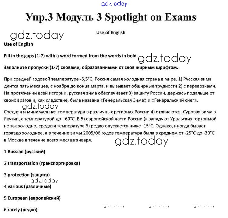 На страницах сайта gdz.today вы найдете учебный и вспомогательный материал, направленный на улучшения знаний школьной программы. ГДЗ - онлайн мир знаний Spotlight on Exams Решение к Module 3 3 Учебнику по Английскому языку для 10 класса Афанасьева, Дули Просвещение Spotlight 2015
