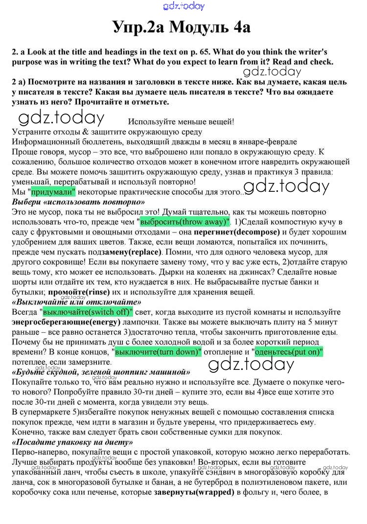 На страницах сайта gdz.today вы найдете учебный и вспомогательный материал, направленный на улучшения знаний школьной программы. ГДЗ - онлайн мир знаний Часть 4a Решение к Module 4 2a Учебнику по Английскому языку для 10 класса Афанасьева, Дули Просвещение Spotlight 2015