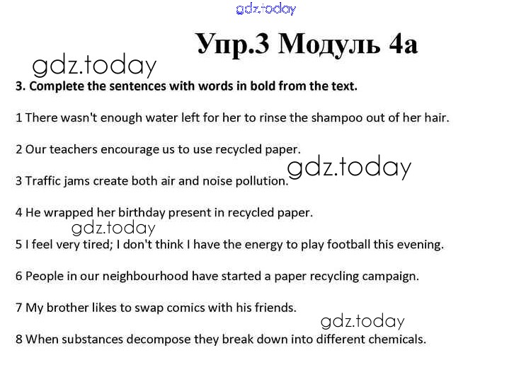 На страницах сайта gdz.today вы найдете учебный и вспомогательный материал, направленный на улучшения знаний школьной программы. ГДЗ - онлайн мир знаний Часть 4a Решение к Module 4 3 Учебнику по Английскому языку для 10 класса Афанасьева, Дули Просвещение Spotlight 2015