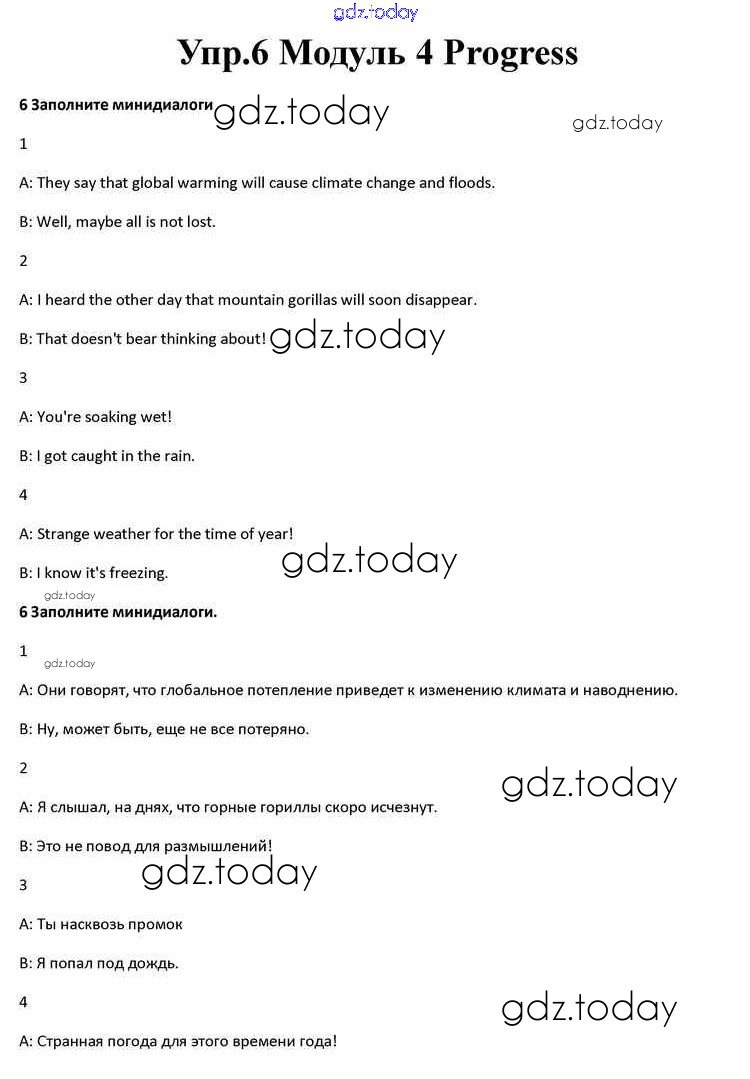 На страницах сайта gdz.today вы найдете учебный и вспомогательный материал, направленный на улучшения знаний школьной программы. ГДЗ - онлайн мир знаний Progress Check Решение к Module 4 6 Учебнику по Английскому языку для 10 класса Афанасьева, Дули Просвещение Spotlight 2015