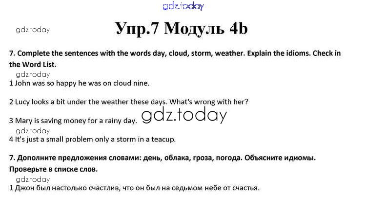 На страницах сайта gdz.today вы найдете учебный и вспомогательный материал, направленный на улучшения знаний школьной программы. ГДЗ - онлайн мир знаний Часть 4b Решение к Module 4 7 Учебнику по Английскому языку для 10 класса Афанасьева, Дули Просвещение Spotlight 2015
