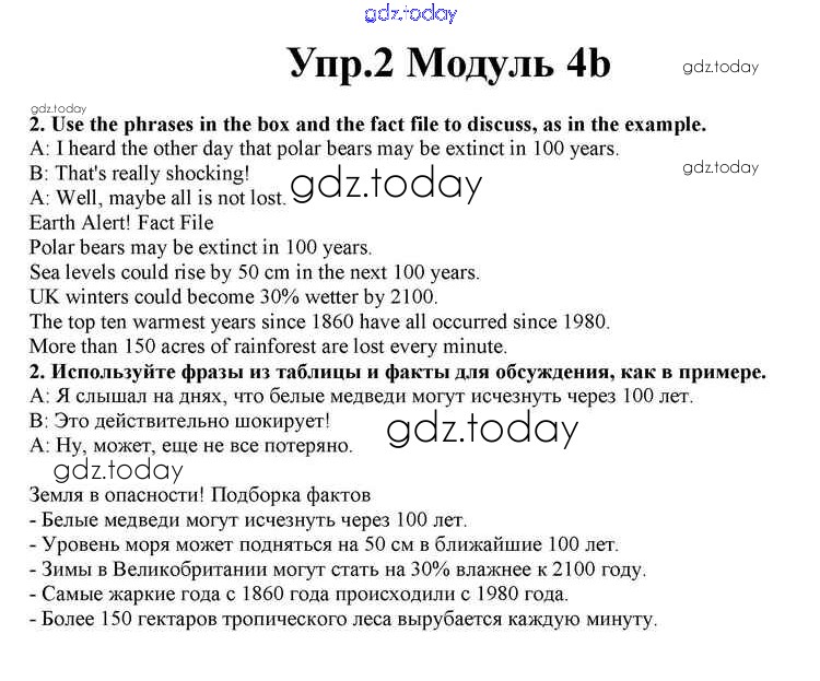 На страницах сайта gdz.today вы найдете учебный и вспомогательный материал, направленный на улучшения знаний школьной программы. ГДЗ - онлайн мир знаний Часть 4b Решение к Module 4 2 Учебнику по Английскому языку для 10 класса Афанасьева, Дули Просвещение Spotlight 2015