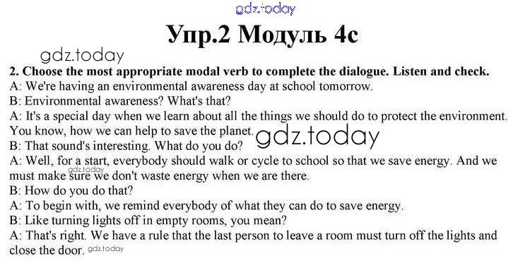 На страницах сайта gdz.today вы найдете учебный и вспомогательный материал, направленный на улучшения знаний школьной программы. ГДЗ - онлайн мир знаний Часть 4c Решение к Module 4 2 Учебнику по Английскому языку для 10 класса Афанасьева, Дули Просвещение Spotlight 2015