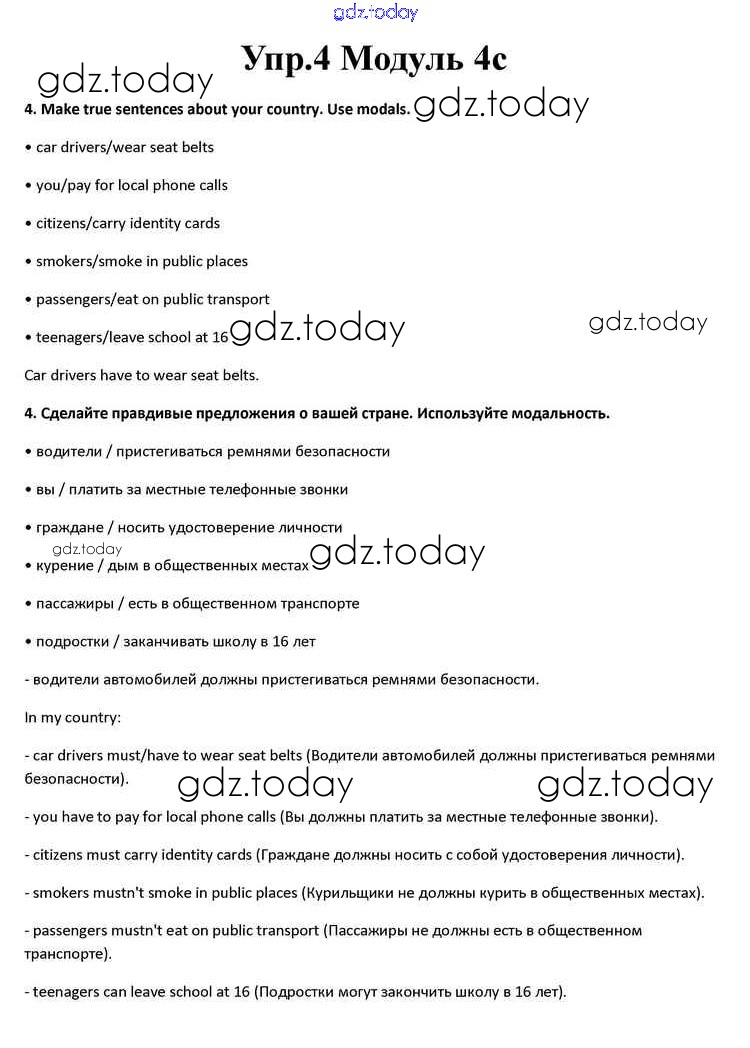 На страницах сайта gdz.today вы найдете учебный и вспомогательный материал, направленный на улучшения знаний школьной программы. ГДЗ - онлайн мир знаний Часть 4c Решение к Module 4 4 Учебнику по Английскому языку для 10 класса Афанасьева, Дули Просвещение Spotlight 2015