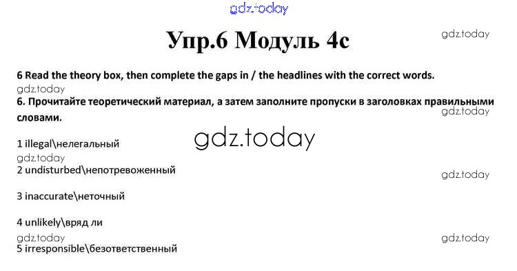 На страницах сайта gdz.today вы найдете учебный и вспомогательный материал, направленный на улучшения знаний школьной программы. ГДЗ - онлайн мир знаний Часть 4c Решение к Module 4 6 Учебнику по Английскому языку для 10 класса Афанасьева, Дули Просвещение Spotlight 2015