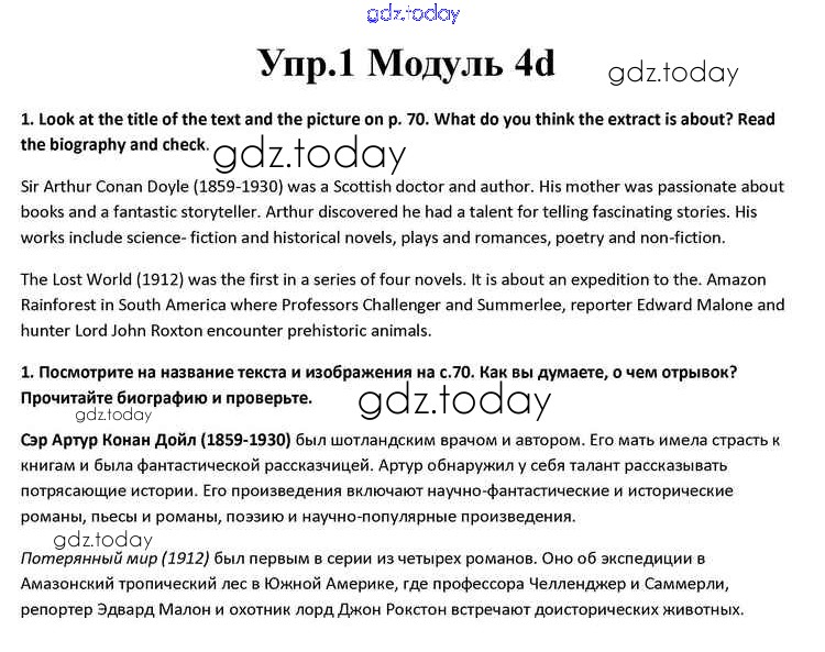 На страницах сайта gdz.today вы найдете учебный и вспомогательный материал, направленный на улучшения знаний школьной программы. ГДЗ - онлайн мир знаний Часть 4d Решение к Module 4 1 Учебнику по Английскому языку для 10 класса Афанасьева, Дули Просвещение Spotlight 2015