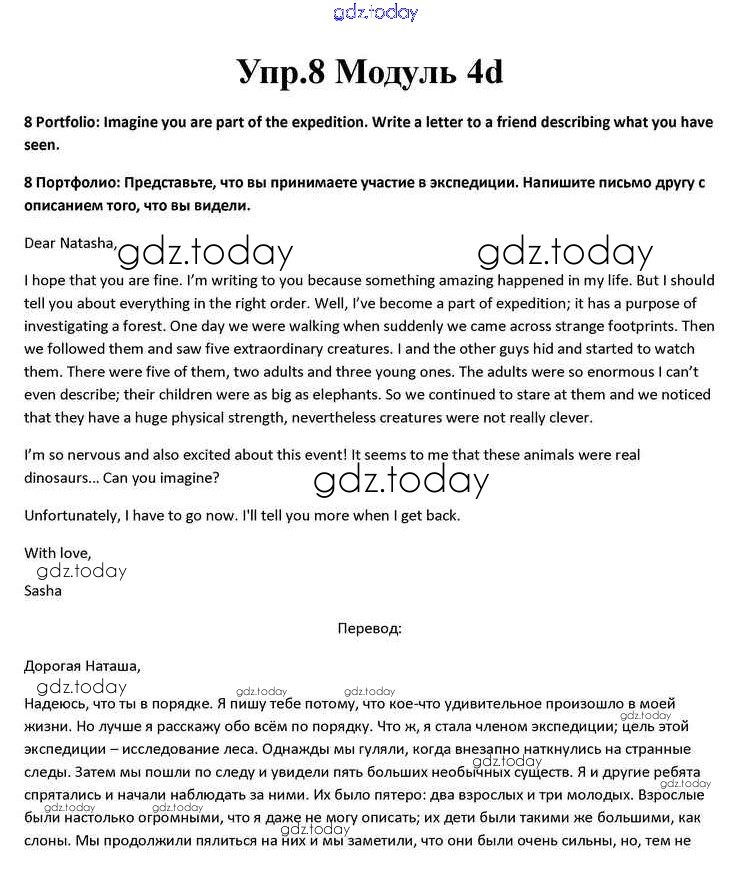 На страницах сайта gdz.today вы найдете учебный и вспомогательный материал, направленный на улучшения знаний школьной программы. ГДЗ - онлайн мир знаний Часть 4d Решение к Module 4 8 Учебнику по Английскому языку для 10 класса Афанасьева, Дули Просвещение Spotlight 2015