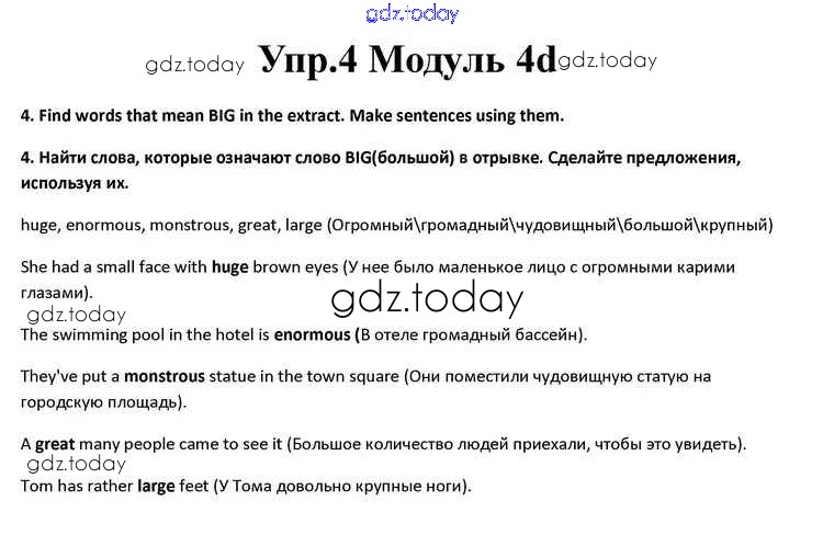 На страницах сайта gdz.today вы найдете учебный и вспомогательный материал, направленный на улучшения знаний школьной программы. ГДЗ - онлайн мир знаний Часть 4d Решение к Module 4 4 Учебнику по Английскому языку для 10 класса Афанасьева, Дули Просвещение Spotlight 2015