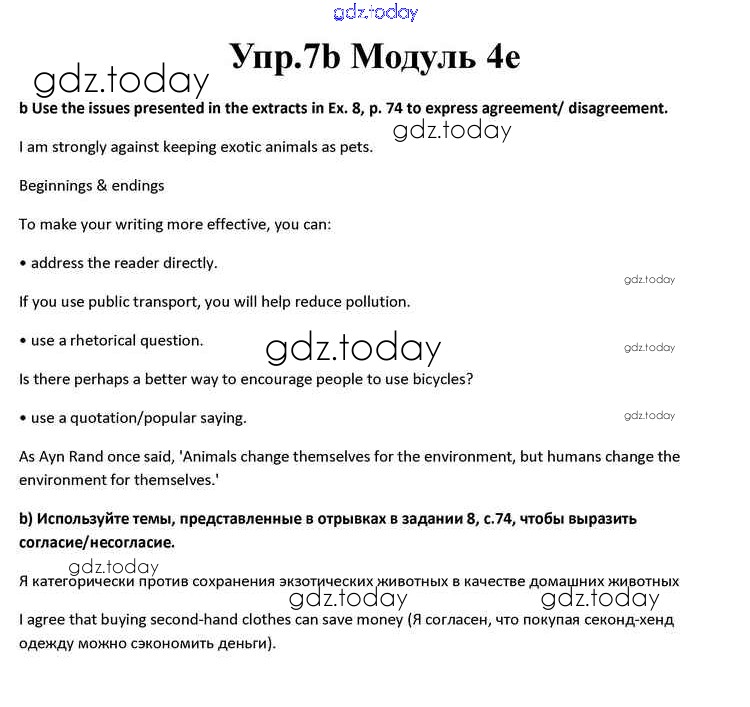 На страницах сайта gdz.today вы найдете учебный и вспомогательный материал, направленный на улучшения знаний школьной программы. ГДЗ - онлайн мир знаний Часть 4e Решение к Module 4 7b Учебнику по Английскому языку для 10 класса Афанасьева, Дули Просвещение Spotlight 2015