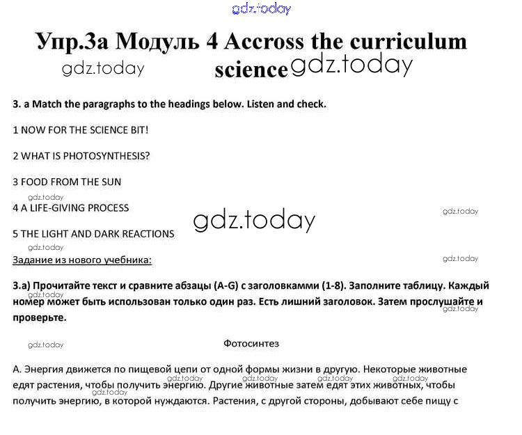 На страницах сайта gdz.today вы найдете учебный и вспомогательный материал, направленный на улучшения знаний школьной программы. ГДЗ - онлайн мир знаний Accross the curriculum Science Решение к Module 4 3a Учебнику по Английскому языку для 10 класса Афанасьева, Дули Просвещение Spotlight 2015