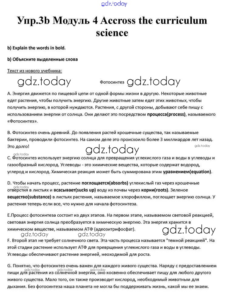 На страницах сайта gdz.today вы найдете учебный и вспомогательный материал, направленный на улучшения знаний школьной программы. ГДЗ - онлайн мир знаний Accross the curriculum Science Решение к Module 4 3b Учебнику по Английскому языку для 10 класса Афанасьева, Дули Просвещение Spotlight 2015